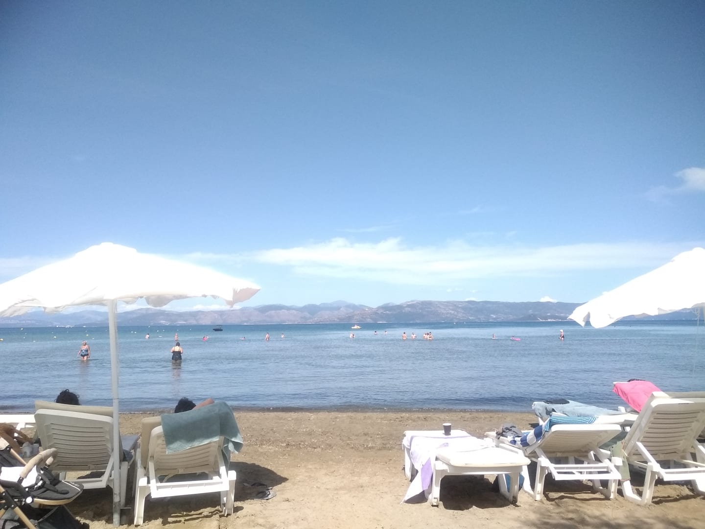 Sandstrand, Meerestiefe niedrig, schnorcheln möglich, schwimmen erst weit draußen geeignet.