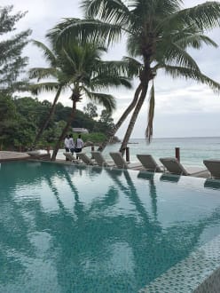 Infinity Pool mit Blick auf Palmen und den Strad