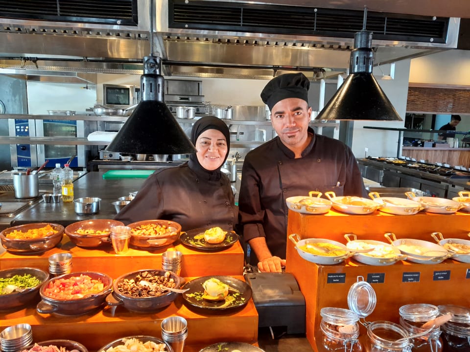 Tolles Frühstücksbüffet , Fatima und Omar sorgen unter anderem für die Gäste mit pouchierten Eiern .