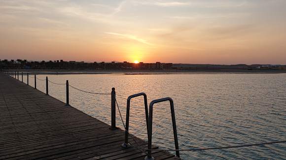 Blick von dem ca 800m langen Steg zum Hotel