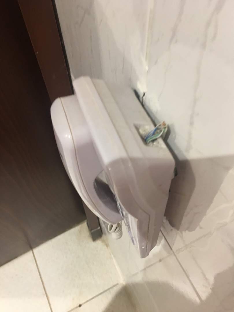 Badtelefon hing lose an der Wand