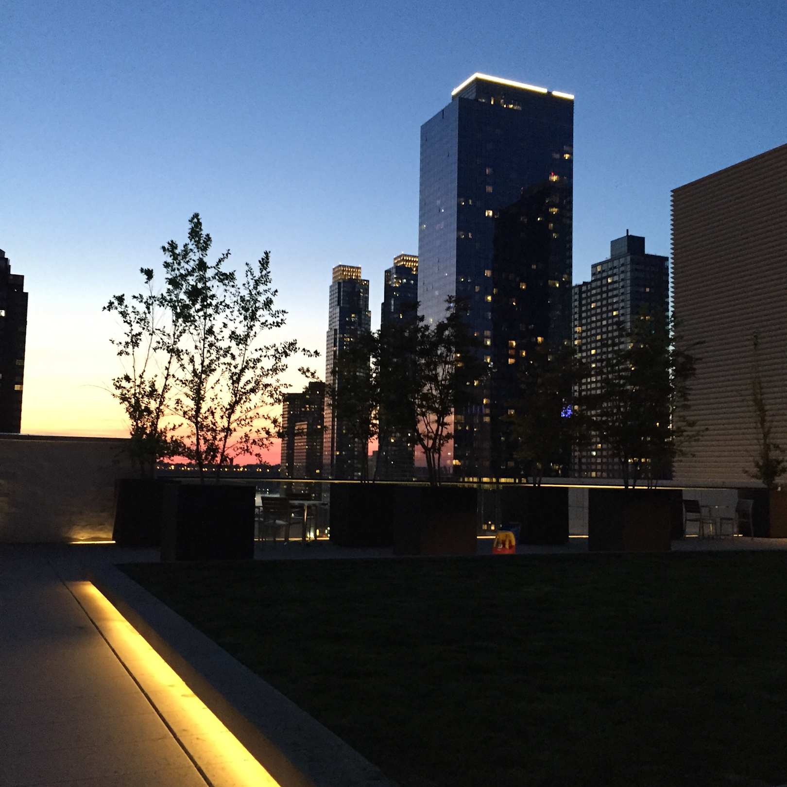 Abendlicher Ausblick von der Dachterrasse Richtung Hudson River