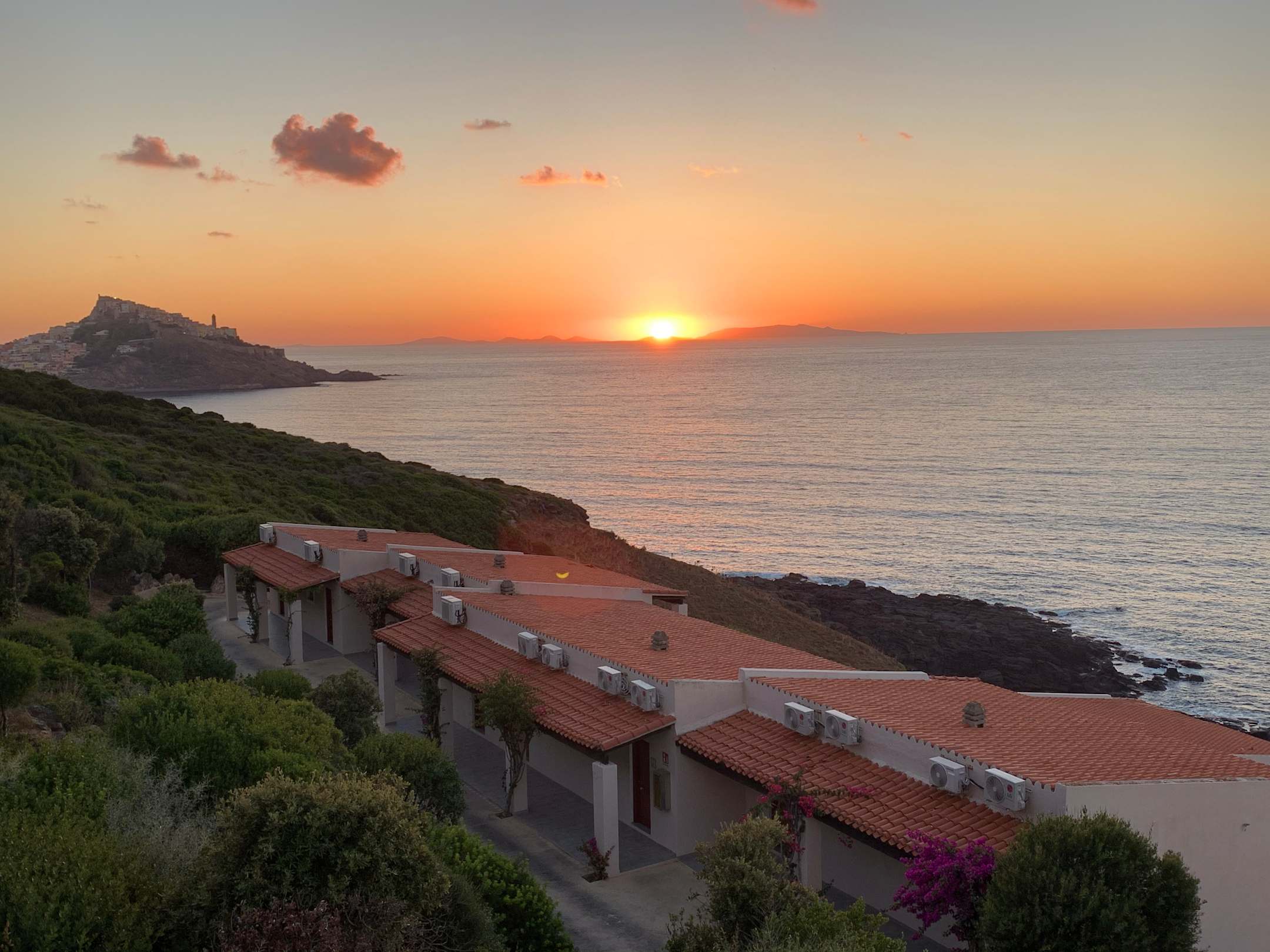 AußenansichtLa vue de notre balcon : un super coucher de soleil et vue magnifique sur le village de Castelsardo !❤️