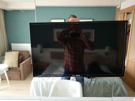 TV extrem schräg an der Wand . Scheint jetzt modern zu sein