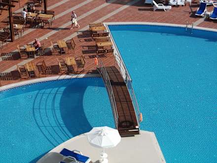 Vom Zimmer mit Blick auf Pool