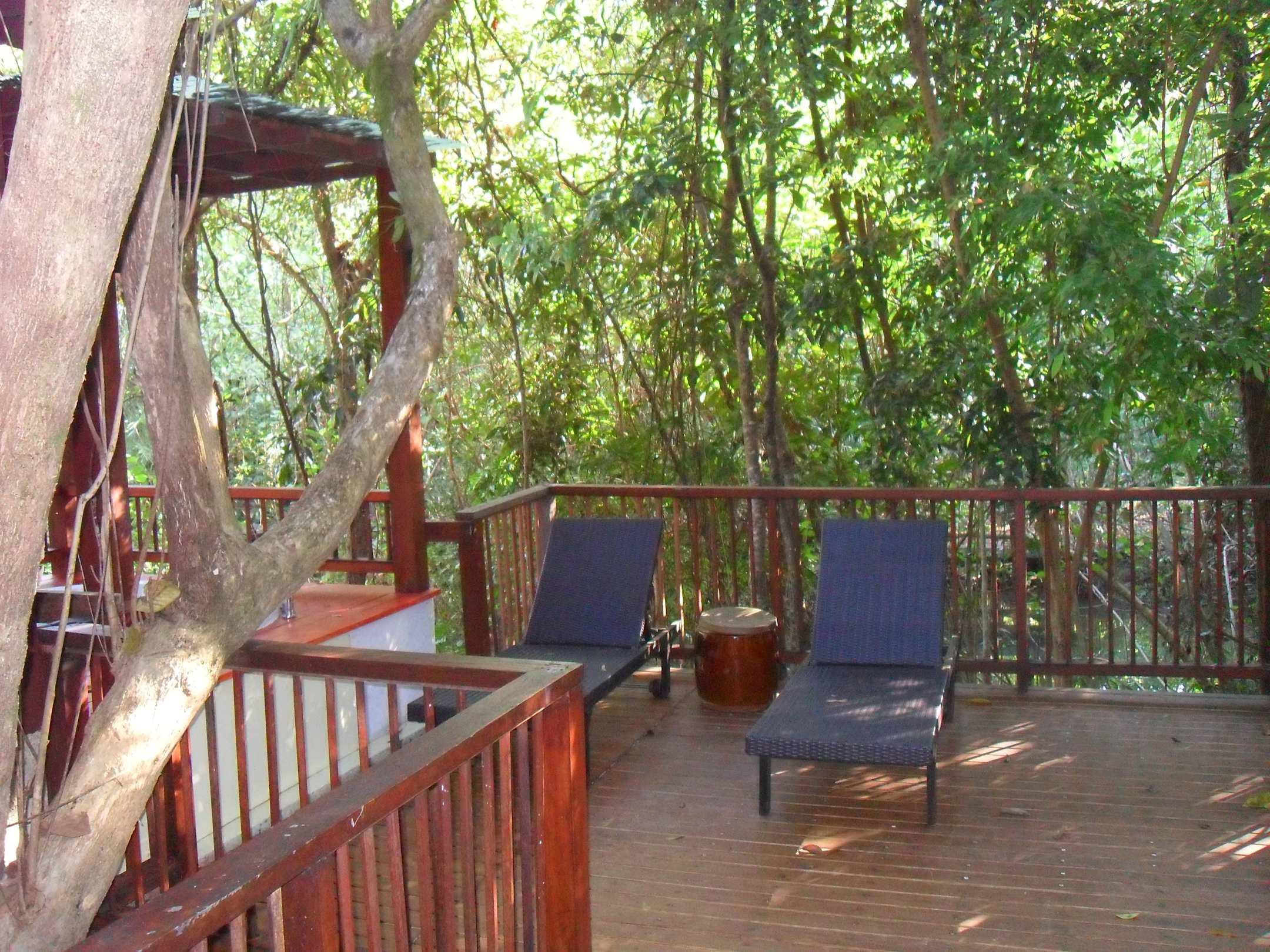 Unsere Terrasse mit Liegen und Whirlpool