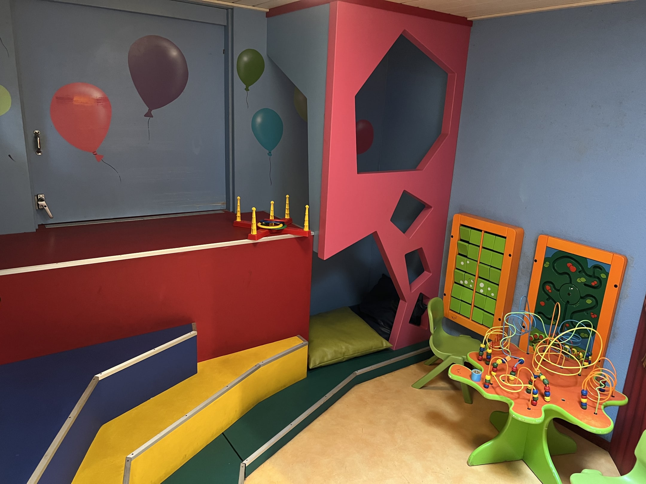 Bungalow Nr. 352: Spielzimmer mit Schiebetür zum Spielhaus draußen