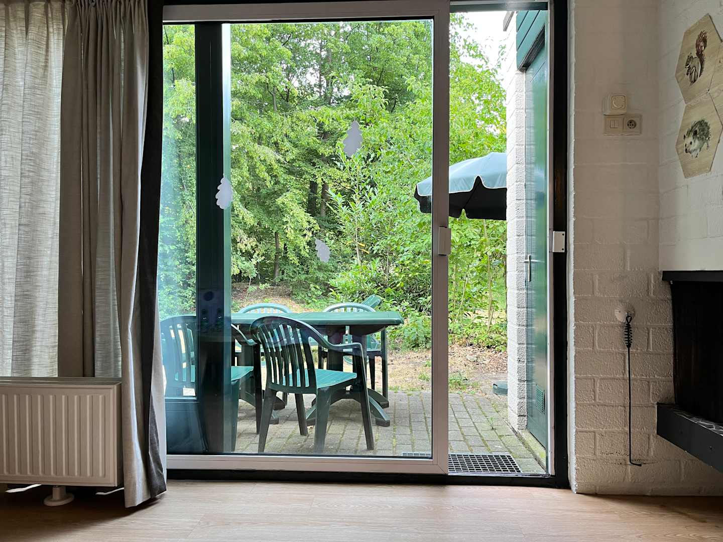 Ausblick aus dem Wohnzimmer auf die Terrasse