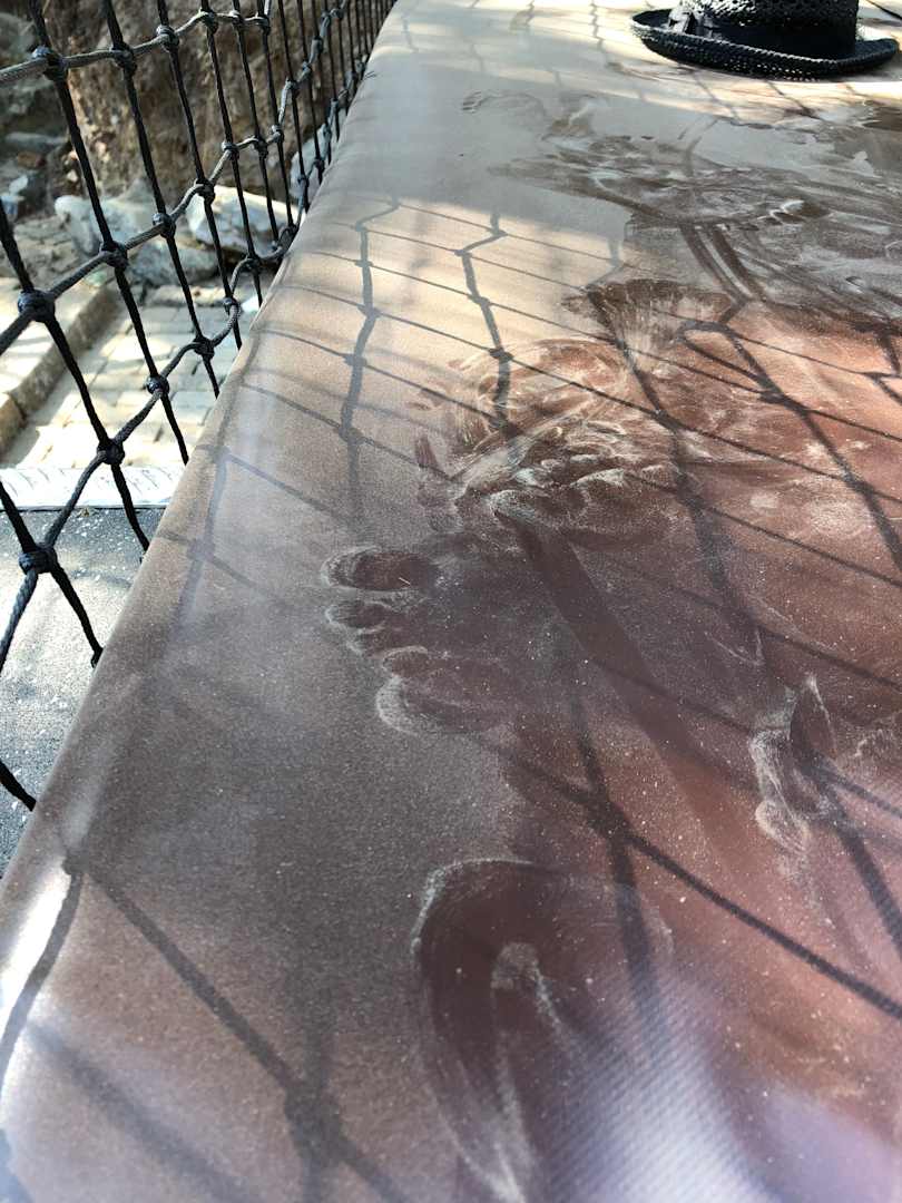 Sport & FreizeitTrampolin draussen. Nach Fertigstellung der Anlage, hätte das Personal dies mal sauber machen können.