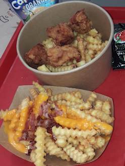 Rockets, einmal "Kindermenü" und extra Beilagenpommes mit Bacon / Cheese