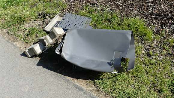 Mülleimer von Baggern platt gefahren
