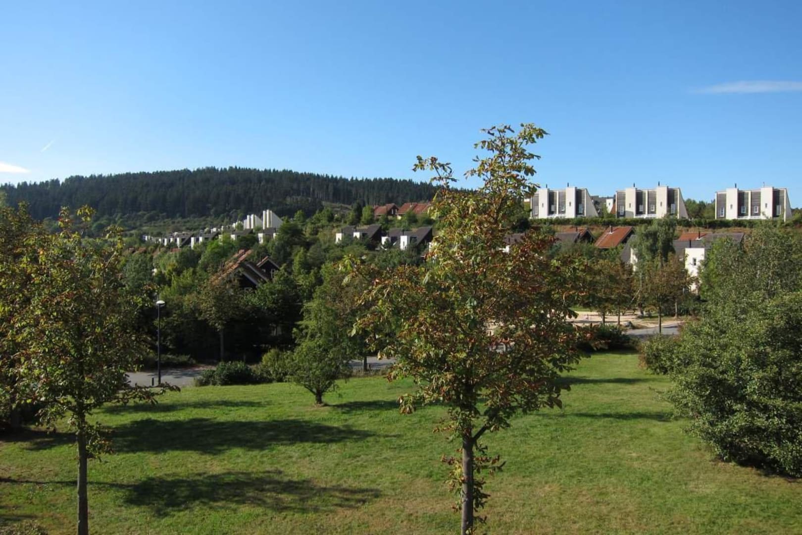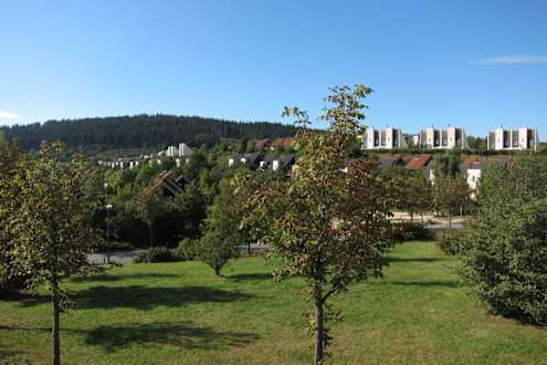 Blick auf den Ferienpark von einem Spielplatz