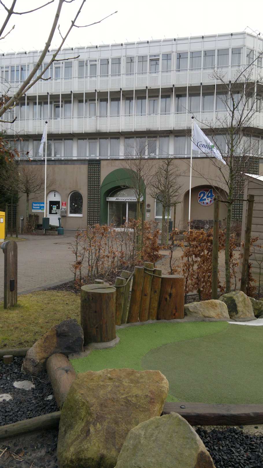 Minigolf und Hotel mit Eingang Rezeption
