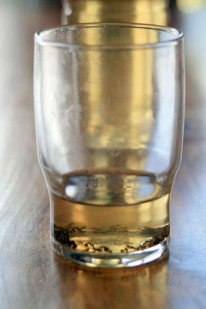 Am Abend das Glas vom Tisch nicht abgeräumt. Am nächsten morgen schwammen darin diverse tote Ameisen. Nicht sehr lecker.