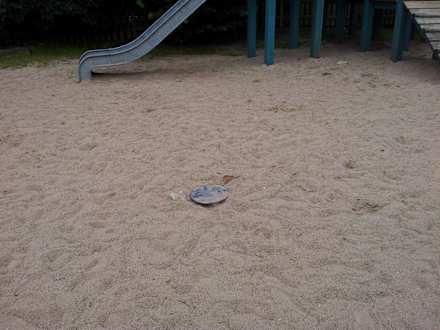 Verankerte Metallplatte mitten im Sandkasten