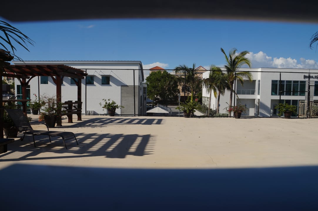 Blick von unserem Zimmer auf die Dachterrasse