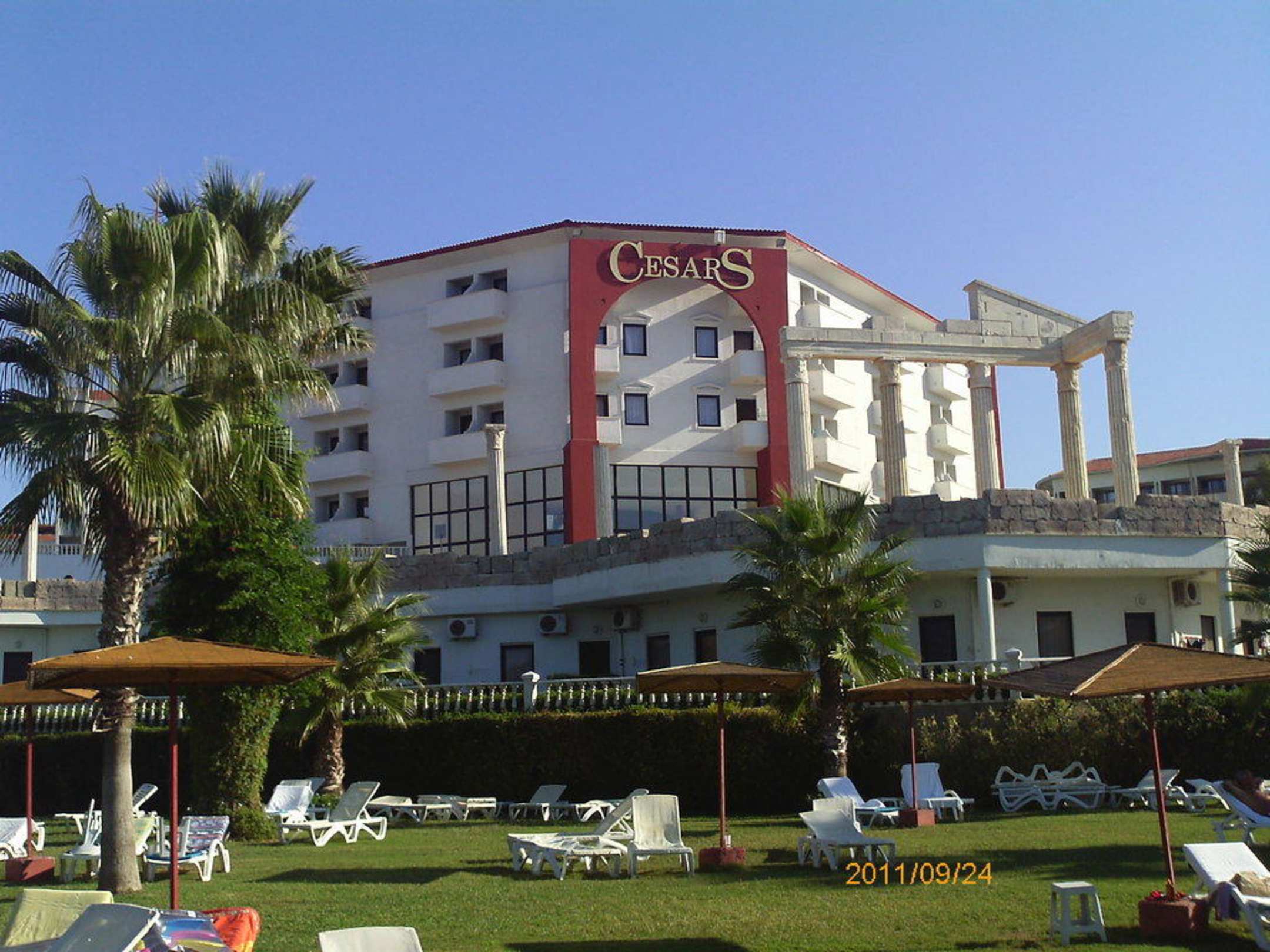 Blick vom Strand auf das Haupthaus Cesars Resort