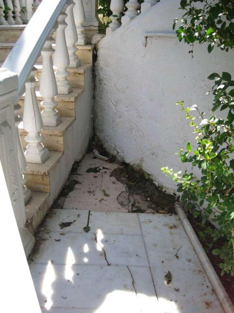 An der Treppe......zwischen der Gartenanlage und dem Nebengebäude.