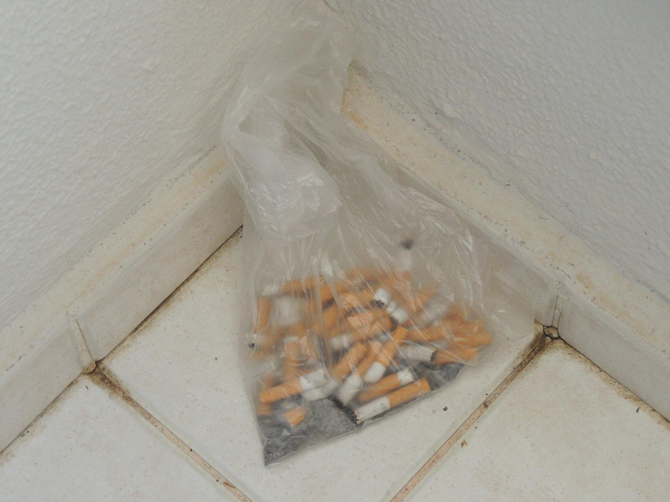 TerazzeAschenbecher (Zigaretten stümmel)wurden nicht geleert.