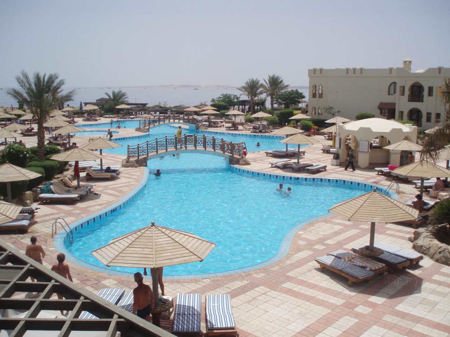 Pool mit Strandausicht von der Shisha Bar aus