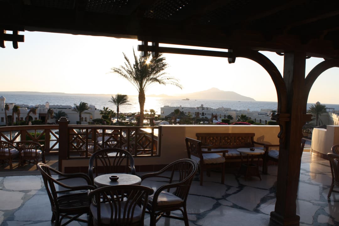 Von der Bar-Terrasse des Sea-Club über die Gesamtanlage auf die Straße von Tiran. Ein schöner Platz für einen leckeren Drink mit grandioser Aussicht.