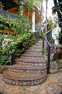 Treppe zum Pool und zu den Nebengebäuden.