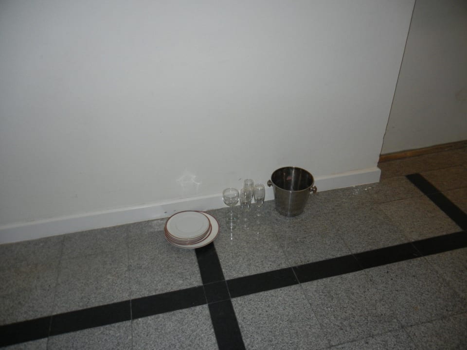 Geschirr steht von Gästen abgestellt stunden- und tagelang (!) im Hotelflur, ohne daß es ein Mitarbeiter wahrnimmt und entfernt...