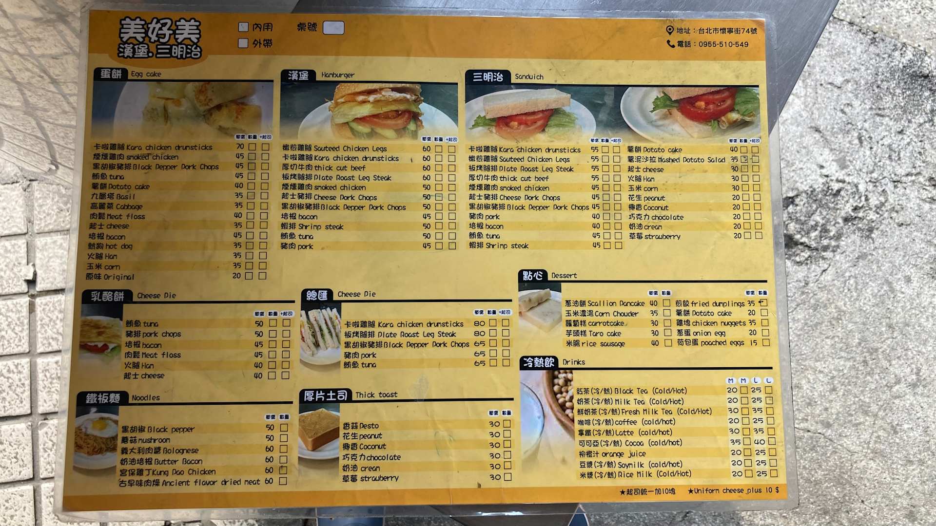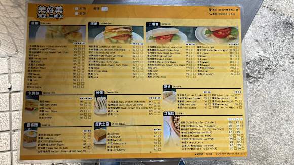Speisekarte Frühstücksrestaurant gegenüber