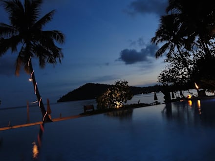 Beleuchteter Pool am Abend