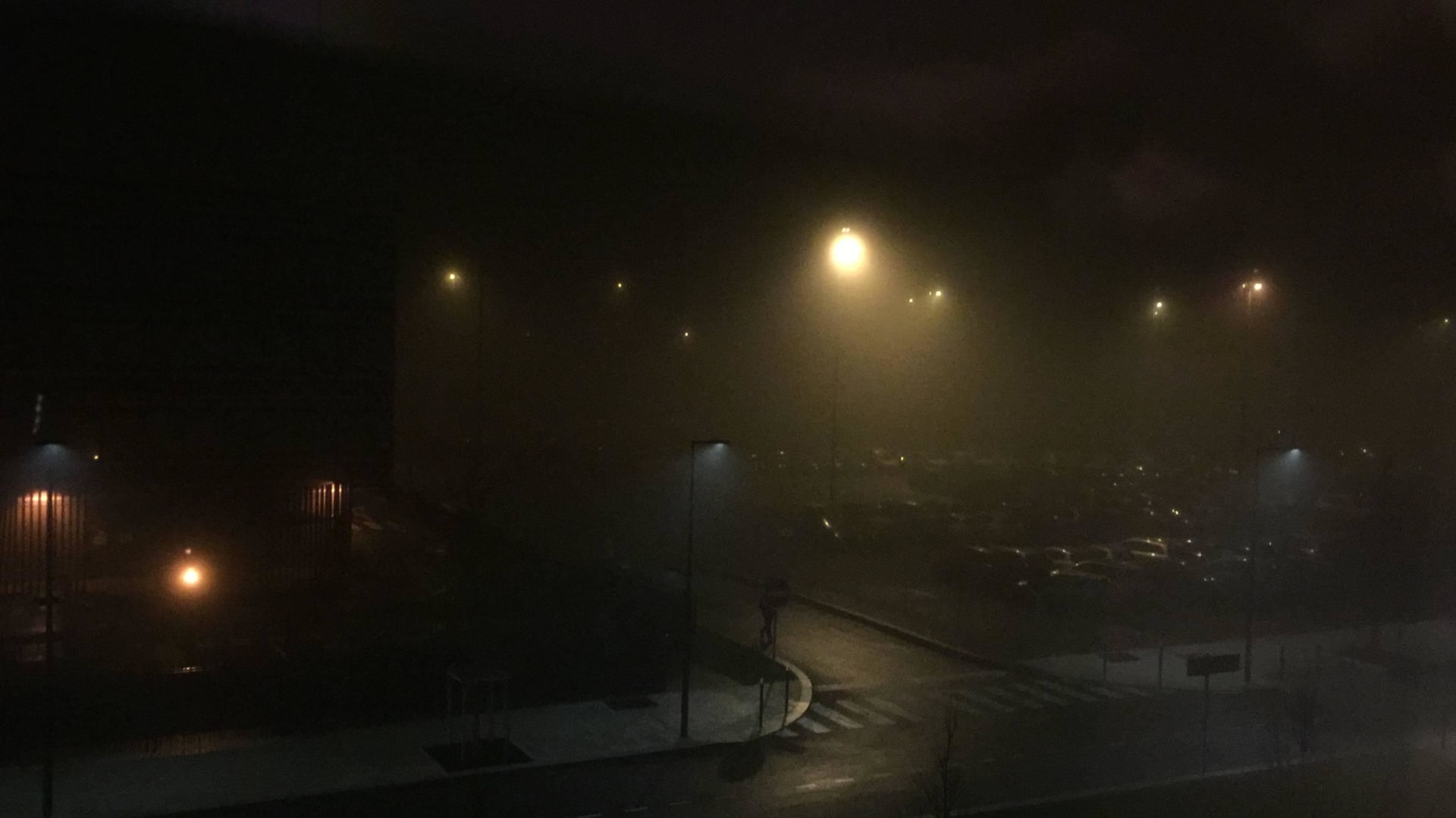 Blick aufs Rollfeld bei Nebel