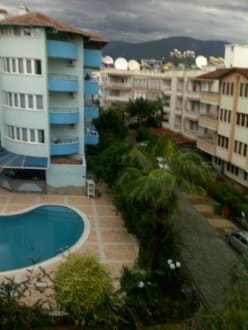 Blick vom Balkon auf die Nachbarhotelanlage und die nahen Berge.Hier war einmal bis nach 24 Uhr der Bär los(geschlossene Gesellschaft)-an einschlafen war nicht zu denken