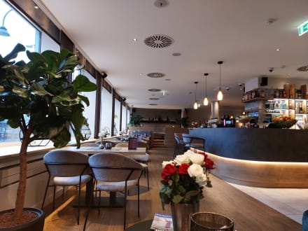 Bar und Sitzgelegenheiten. Weiter hinten gibt es noch mehr Plätze.
