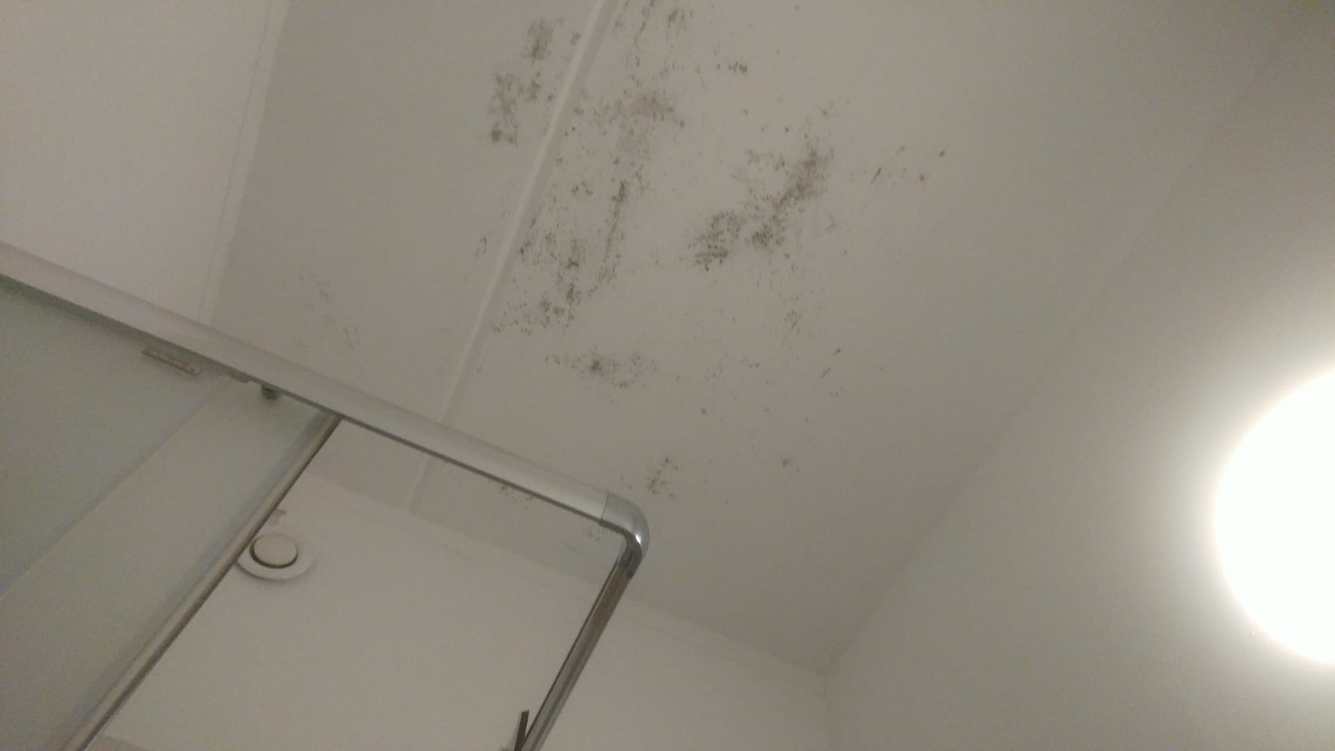 ZimmerDecke im Bad. Ohne Fenster. Aber Lüftung kaputt. Deshalb der Schimmel. Sah in natura noch schlimmer aus wie auf meinem Foto