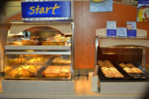 Holiday Inn Express Page - Lake PowellLinks Frikadellen, Biscuits & Gravy sowie Bratkartoffeln, rechts süßes Gebäck