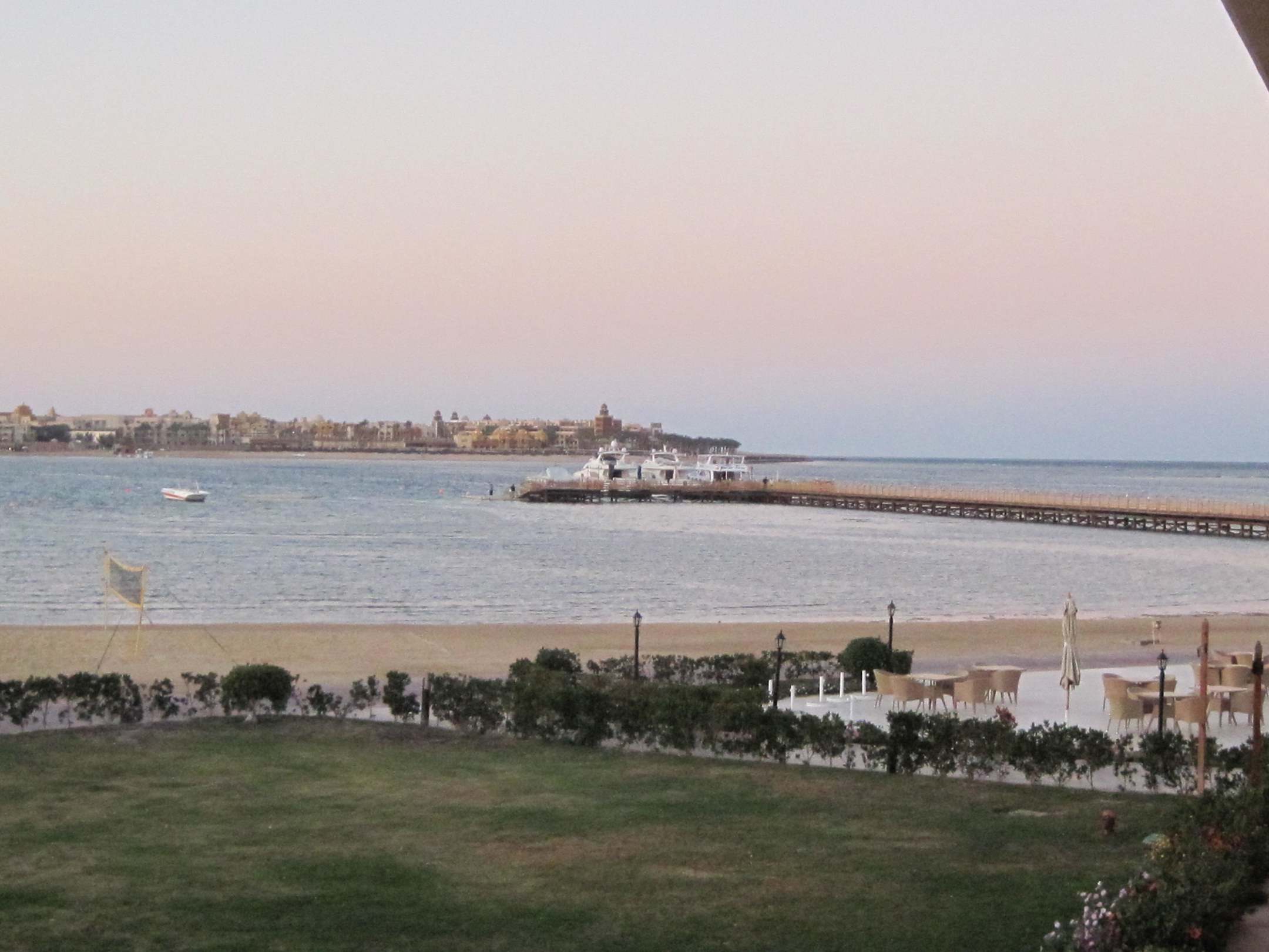Blick vom Balkon zum Steg zum Hausriff
