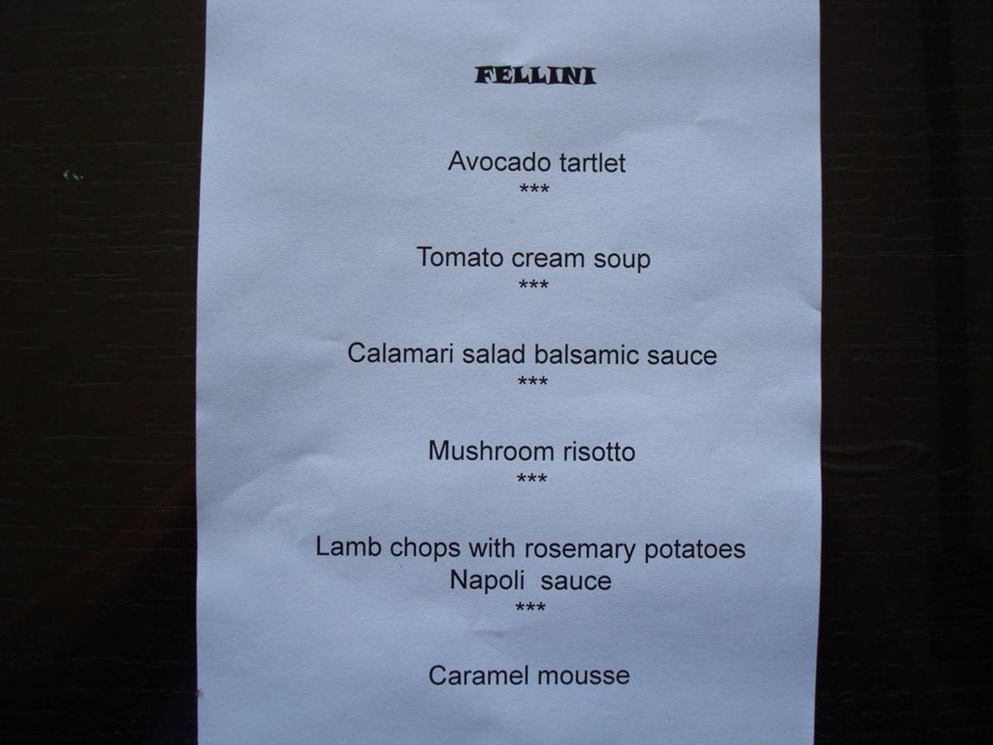 Fellini, Menu Beispiel 2