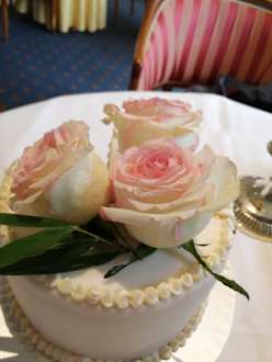 Unsere Hochzeitstorte... Natürlich mit echten Rosen.