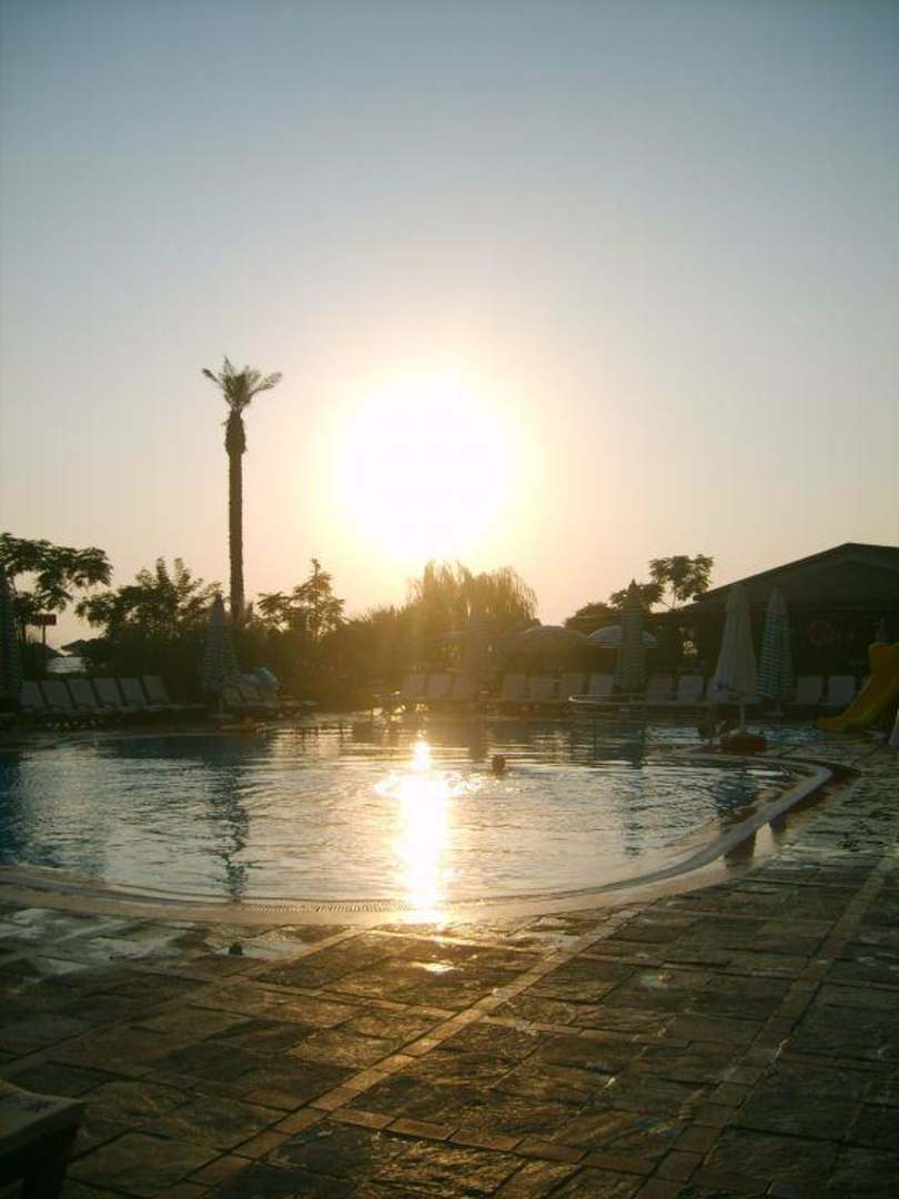 Täglicher Sonnenuntergang am Pool