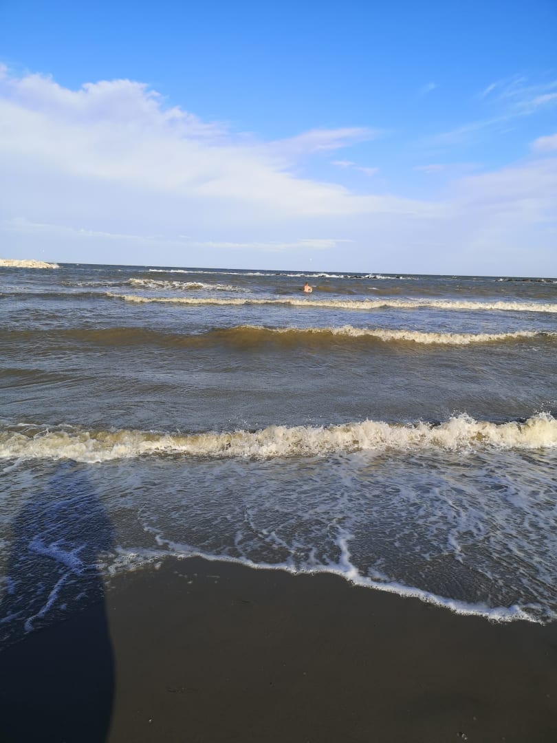 Sehr flach und schön, sauber, Kinder finden viele Muscheln und Krebse. Leider auch ein paar Quallen, sicher durch die Hitze und das extrem warme Wasser (30 Grad)