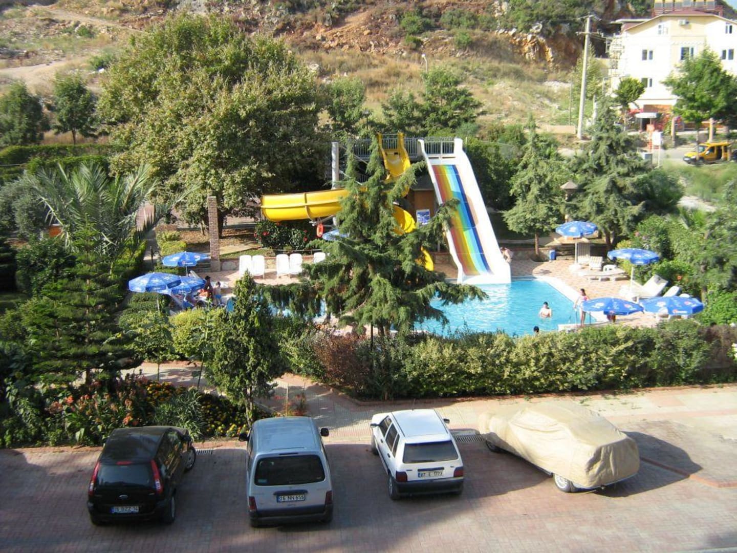 Rutschen am Eingang des Hotels