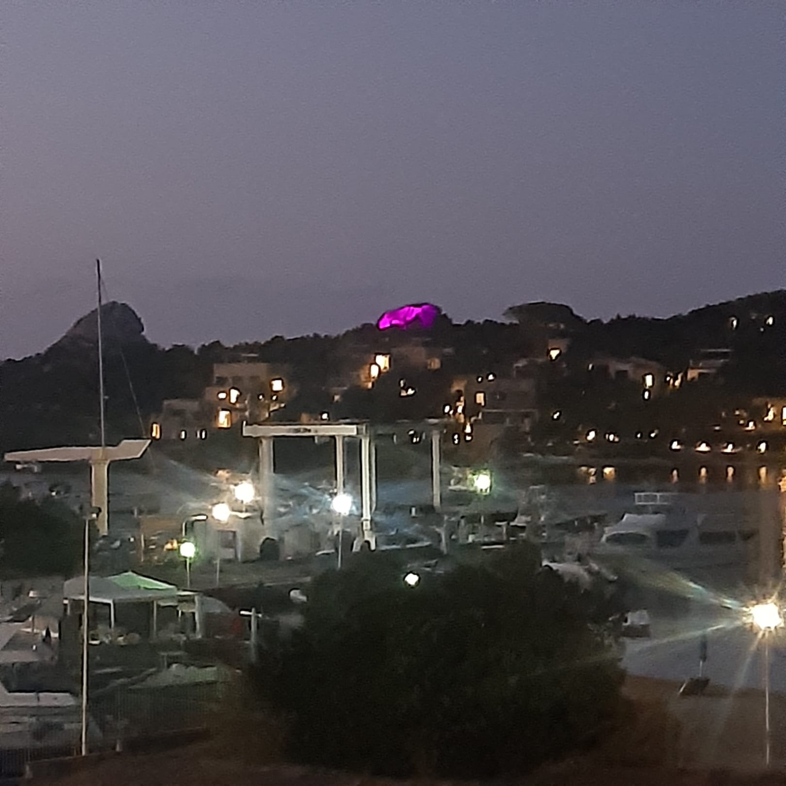 Zimmer Ausblick Abends,. Quasi Hotel eigene Bucht, vis a vis anderes Hotel.