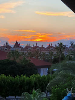 Blick vom Balkon auf den Sonnenuntergang.