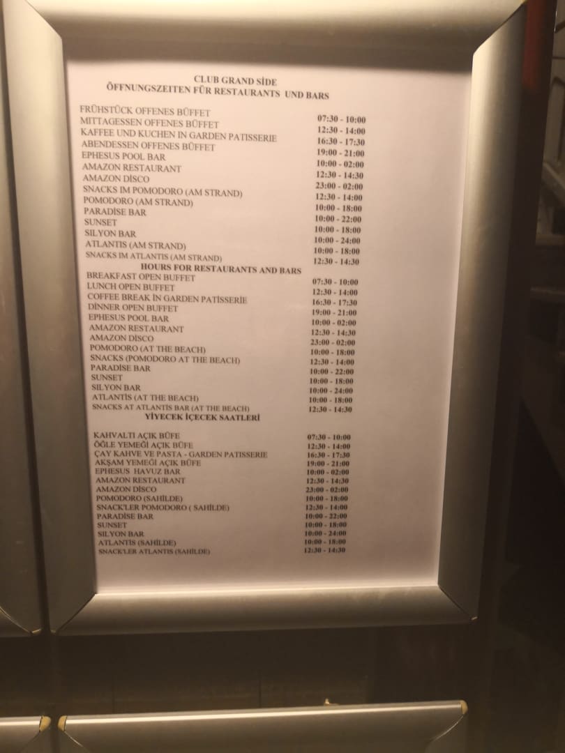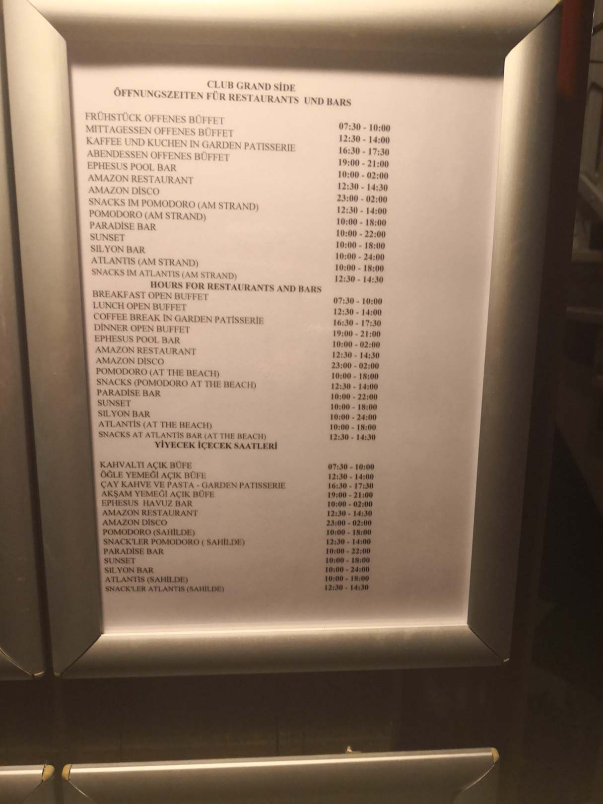 Restaurants und Bars auf einem Blick mit ihren Zeiten.