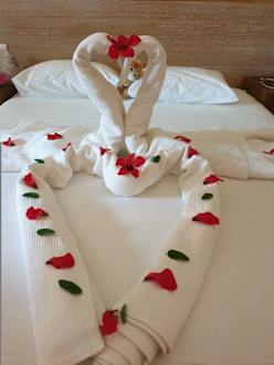 Von der Reinigungskraft täglich schön gestaltetes Bett