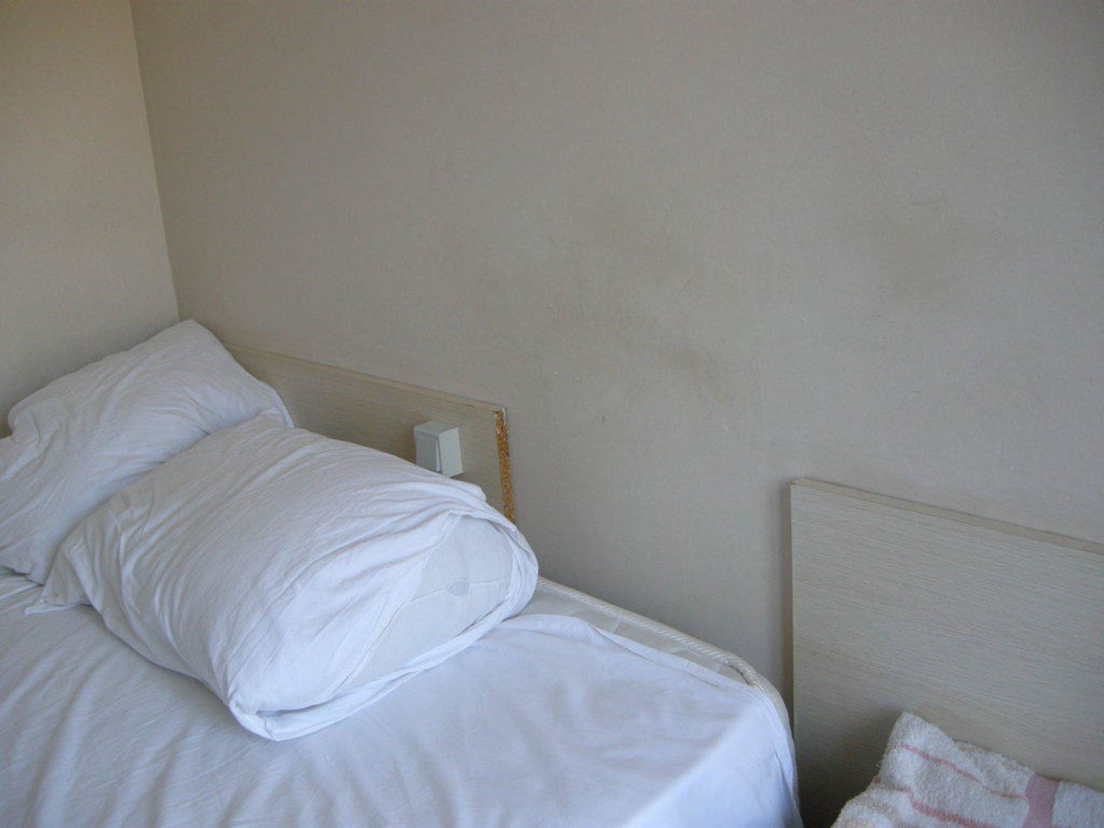 An allen Wänden ecklige Flecken, Bettwäsche nicht einmal gewechselt.