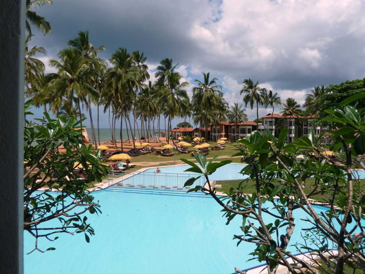 Blick vom Zimmer auf den Pool