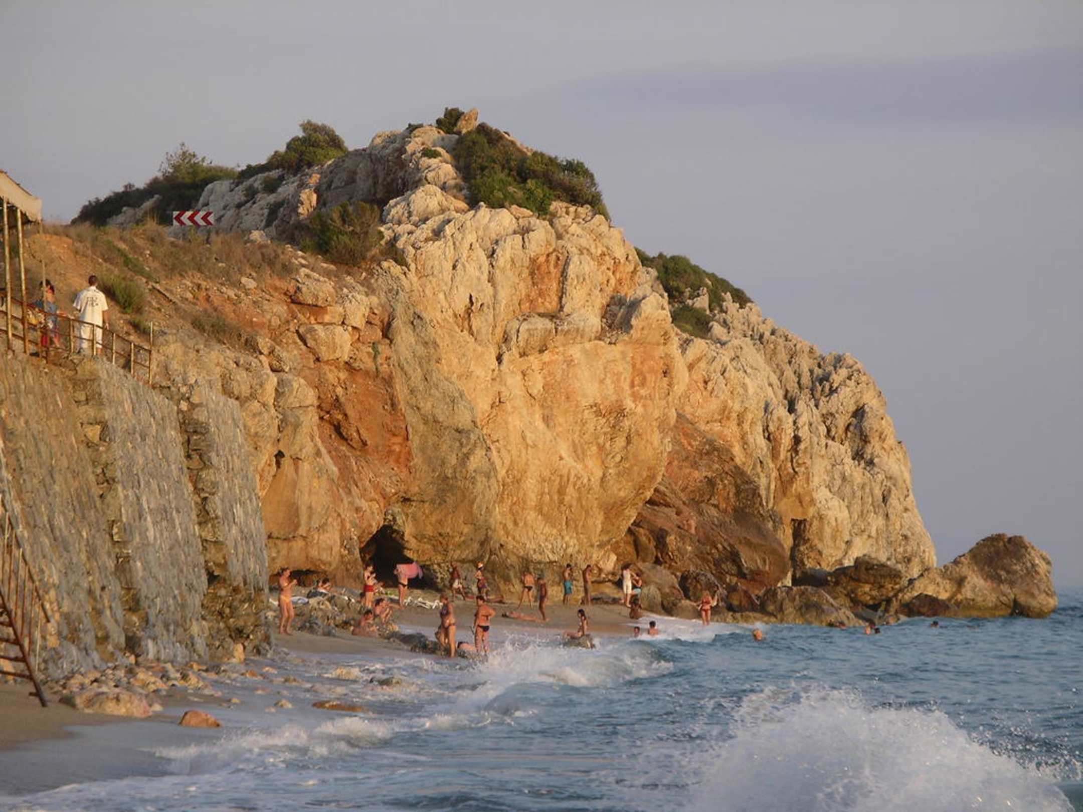 Blick zum guten Strandstückganz hinten unterhalb der Felsen sind keine Felsen im Wasser