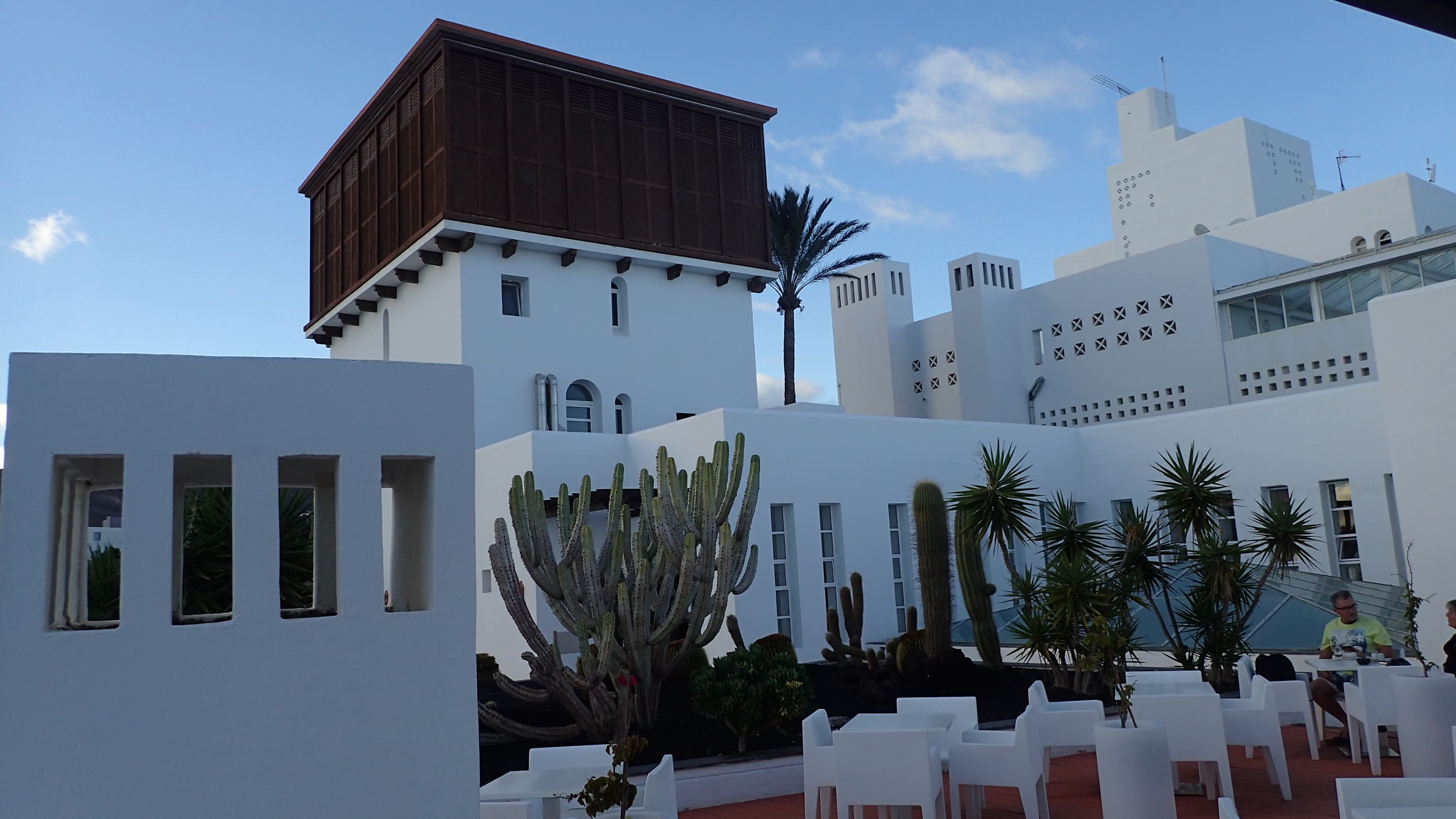 Blick von der Terrasse der Lobby-Bar auf das Hauptgebäude.