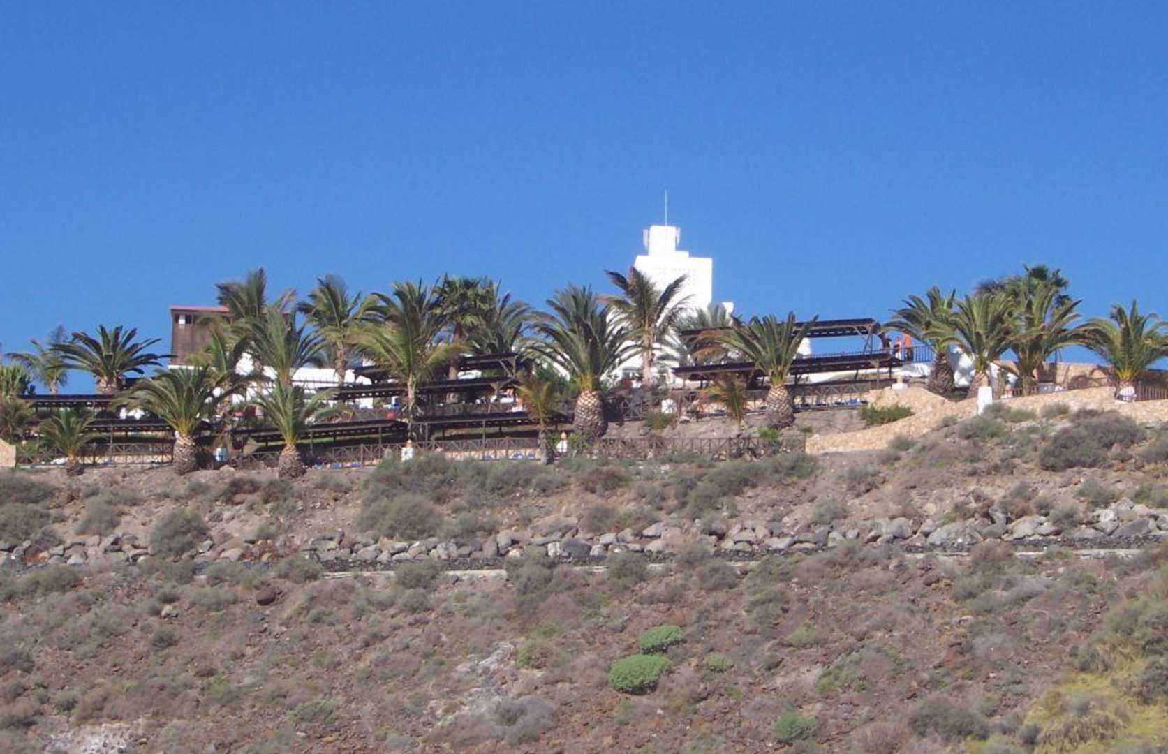 Blick vom Strand auf das Hotel