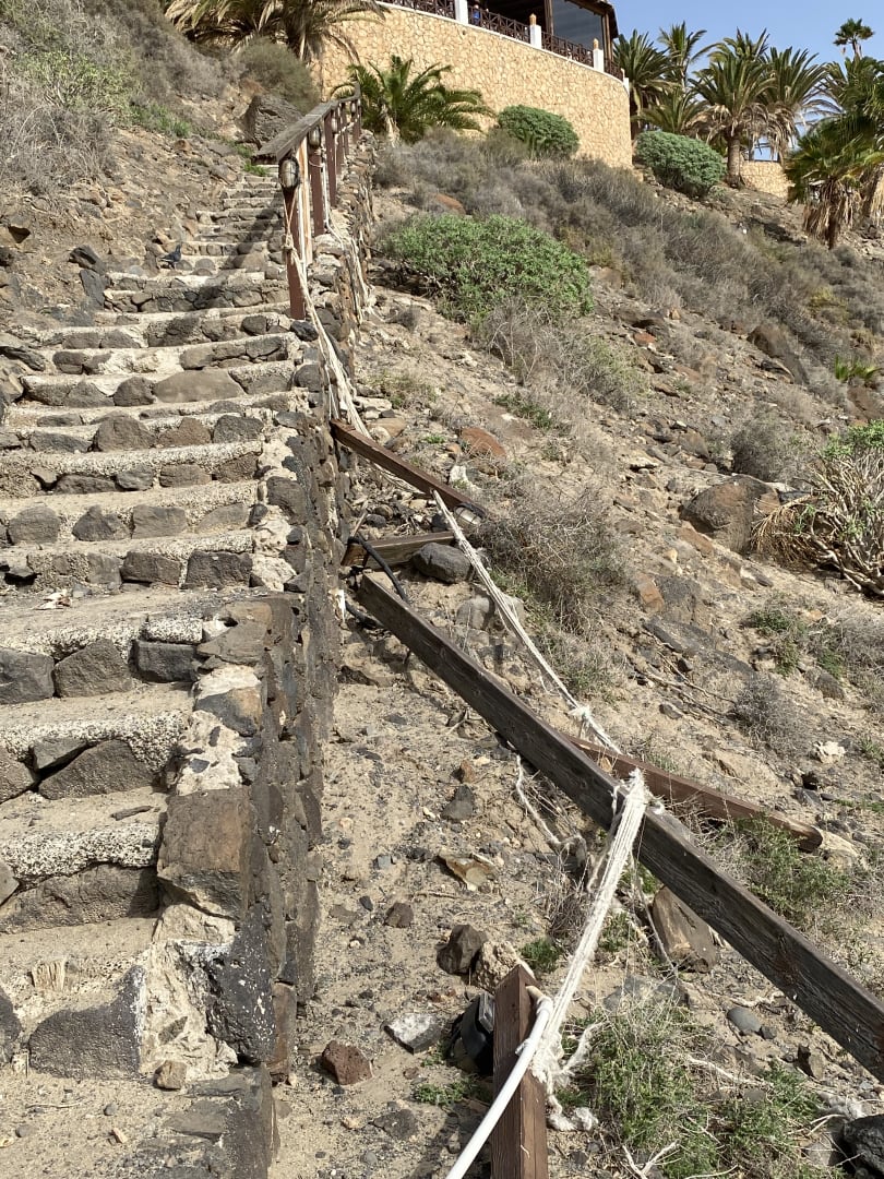 SonstigesTreppe zum Strand. Das Geländer inkl. der Elektronik liegt abgerissen neben der Treppe. Ob noch Strom auf der herumliegenden Leitung ist, entzieht sich meiner Kenntnis. Dieses sieht nicht nur ungepflegt aus, sondern ist zudem auch noch gefährlich.